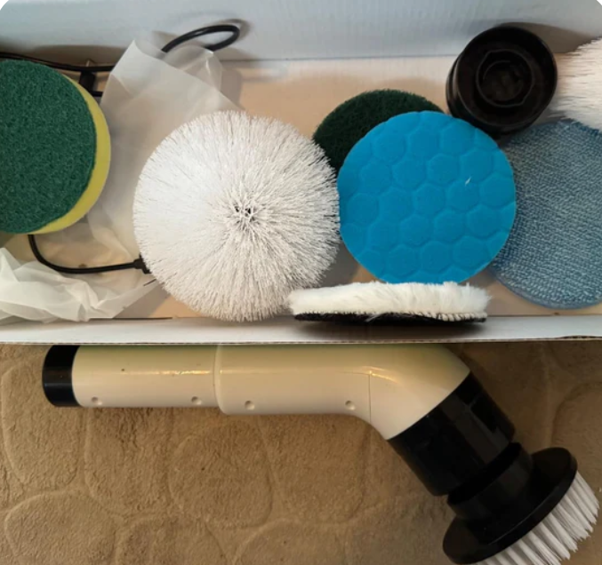 Sí. El kit incluye 9 cabezales intercambiables (cepillos, esponjas y discos) diseñados para adaptarse a distintas superficies: azulejos, duchas, bañeras, cocinas, vidrios, pisos e incluso exteriores como balcones o terrazas. Los cabezales suaves son ideales para superficies delicadas y los más firmes para suciedad incrustada.